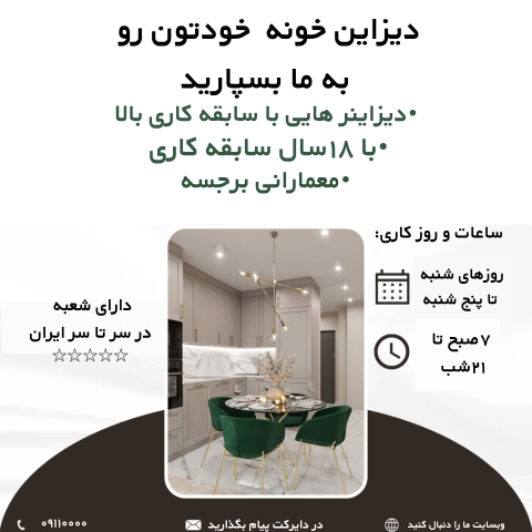 برای دریافت رضایت کارفرما ها و نمونه کارهای بیشتر در واتساپ یا تلگرام پیام بگذارید.
