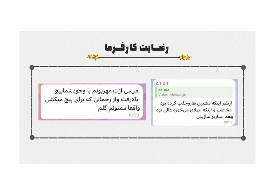 در بخش جذب فالور و فروش من باشما همکاری کردم و واقعا راضی بودم و شمارو به کارفرما های دیگه هم پیشنهاد میکنم